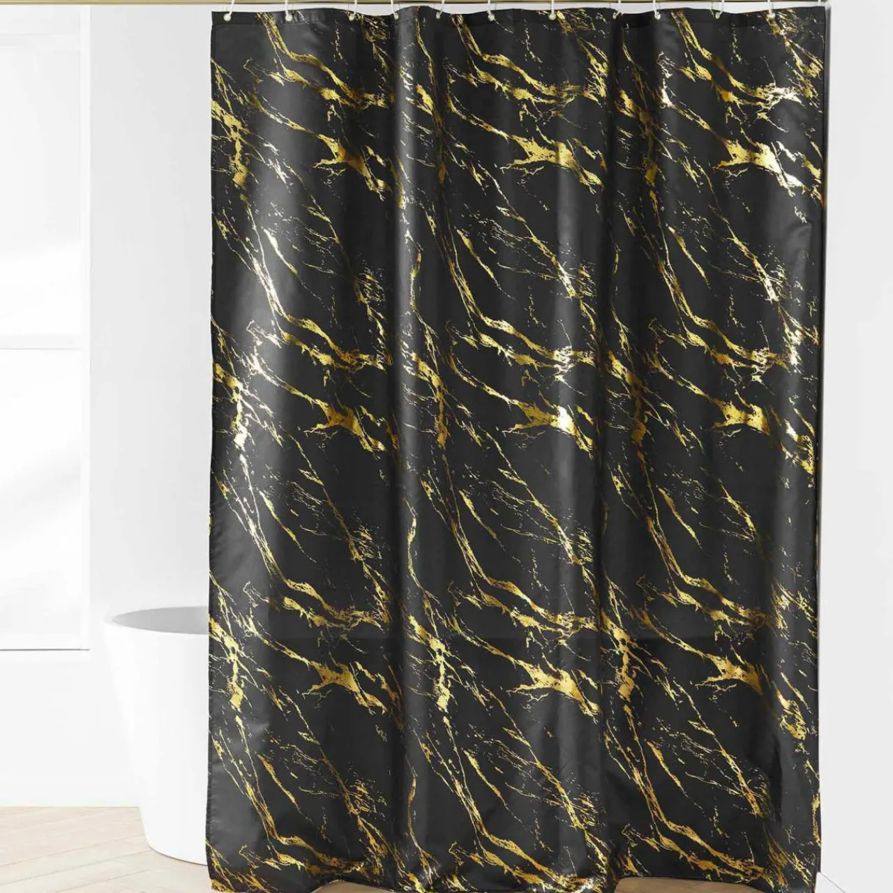 Imprimé : rideau à motif effet marbre métalisé.