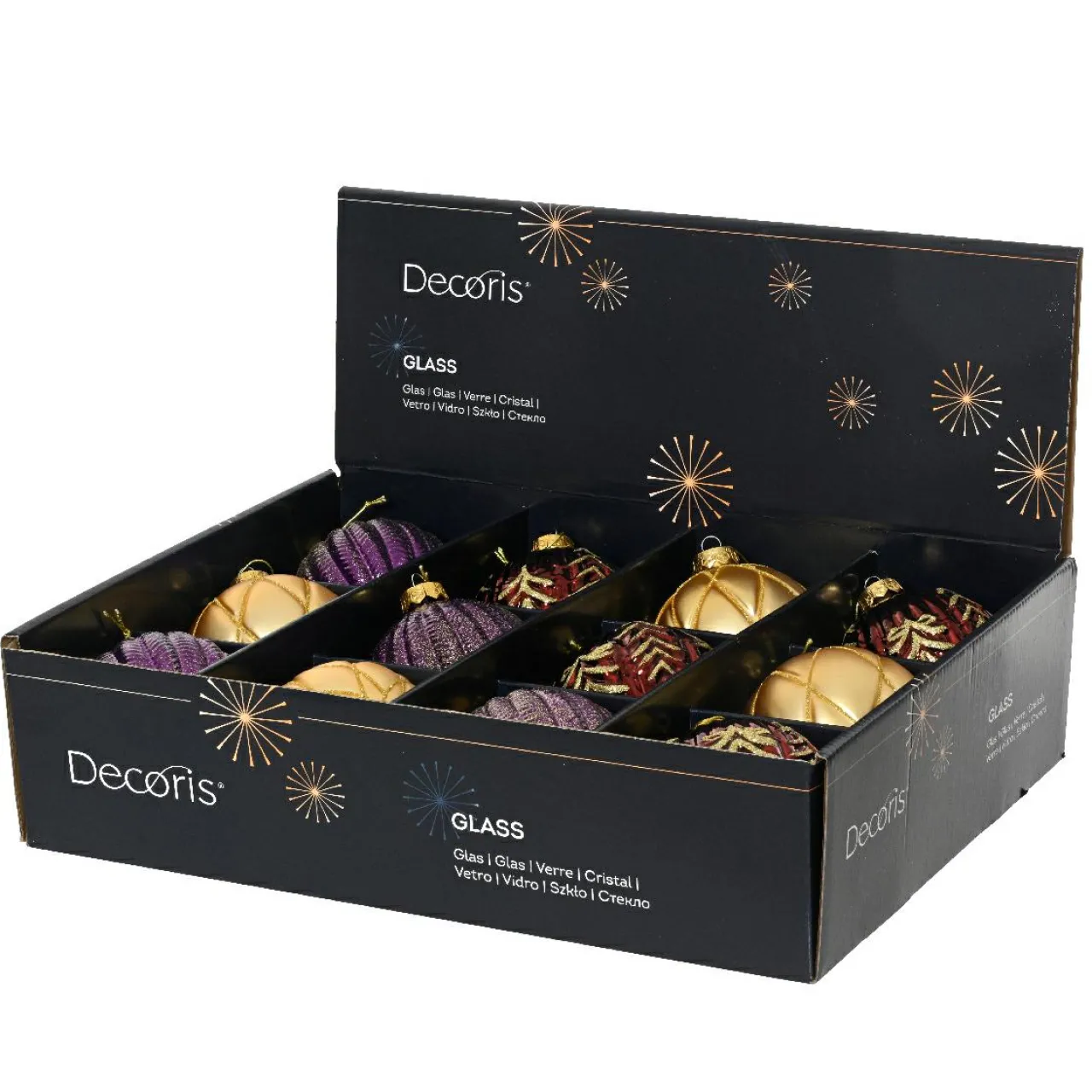 Informations complémentaires : lot de 12 boules. finition : email, brillant, mat. décoration : paillettes. mode de suspension : fil. type de couvercle : capuchon métallique. couleur de l’attache : or.