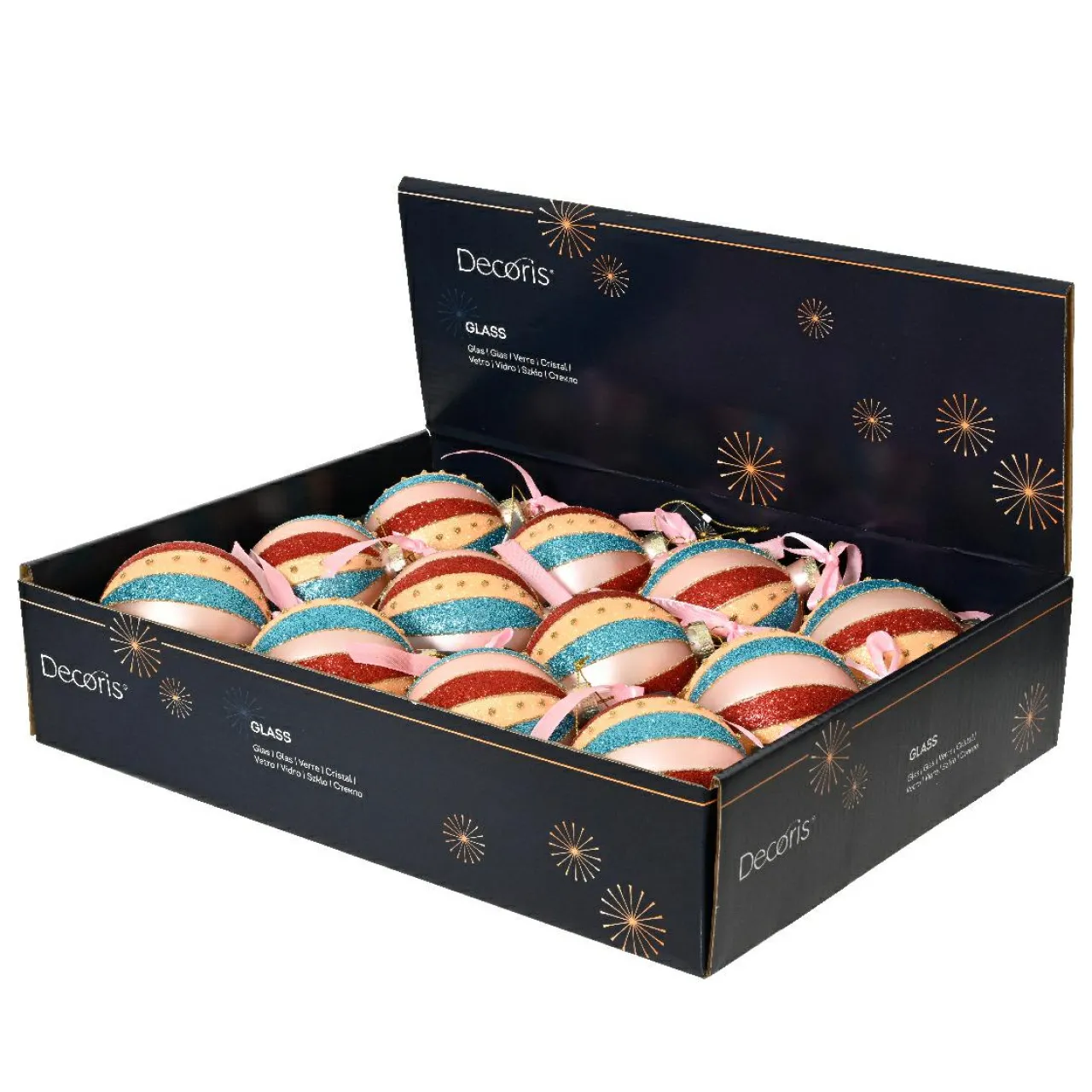 Informations complémentaires : vendu en lot de 12. chaque boule est munie d’une suspension comprise, avec une attache de couleur or.