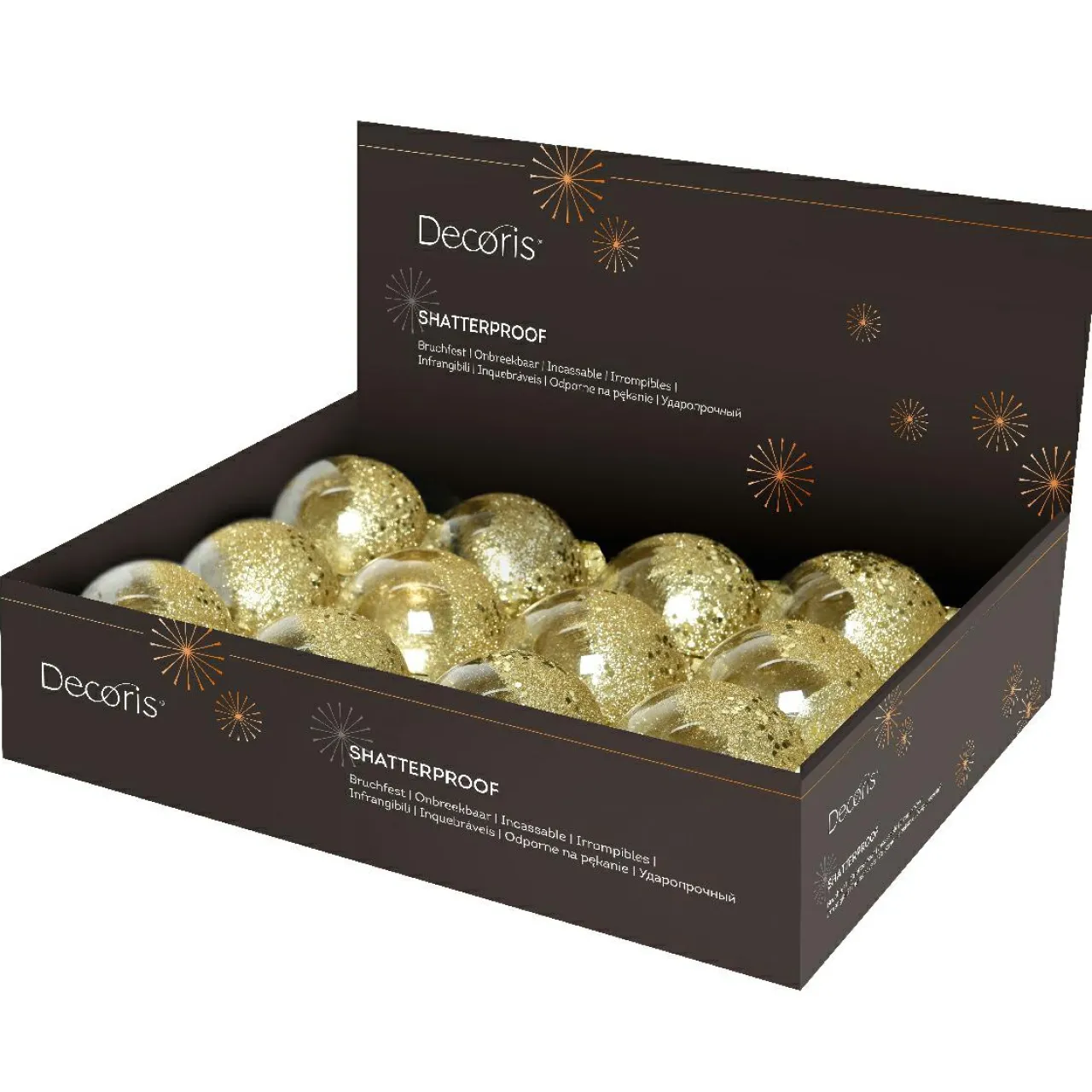 Allure moderne pour ces boules incassables, qui feront scintiller votre sapin de mille feux.