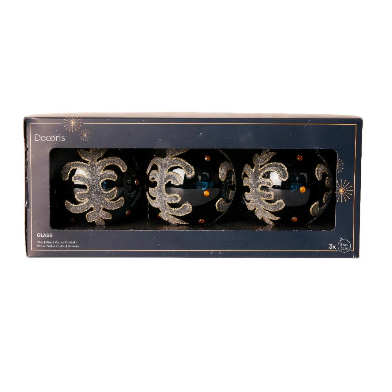 Informations complémentaires : lot de 3 boules. Les boules sont munies d’une suspension dorée comprise.