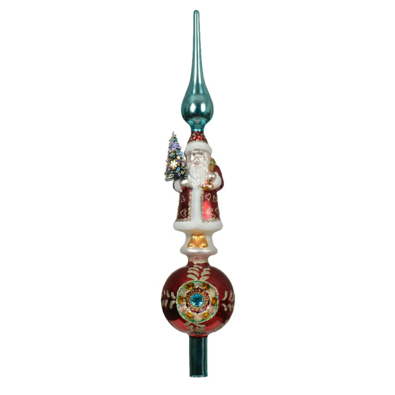 Choisissez le cimier de sapin représentant un élégant Père Noël et ajoutez une touche majestueuse à votre décoration de Noël.