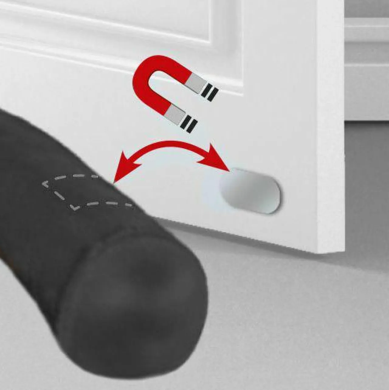 Matière : enveloppe 60% coton et 40% polyester, garnissage 100% polyester ( 2 aimants intégrés dans le coussin et 2 supports adhésifs fournis) . Installation facile, pour tous les types de porte (bois, alu, acier, pvc) . S’adapte aux sols lisses comme parquets et les revêtements en bois, le PVC, les sols stratifiés.