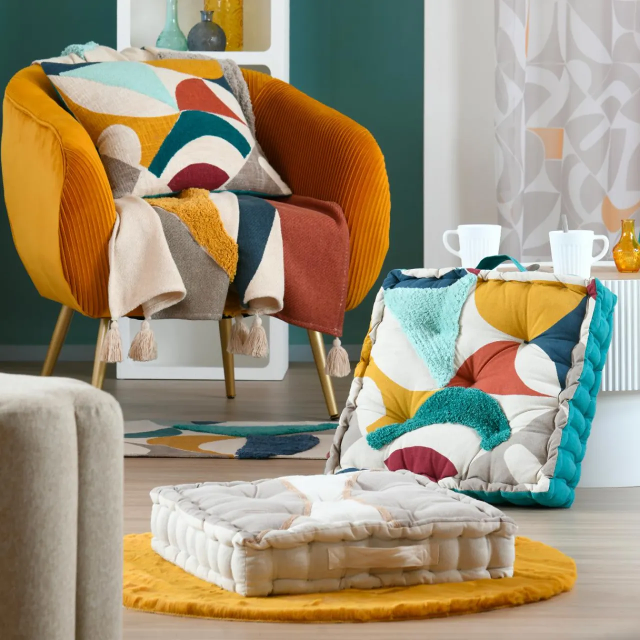 Coussin Et Housse|EMINZA Coussin rectangulaire coton (30 x 50 cm) Pixel Jaune moutarde