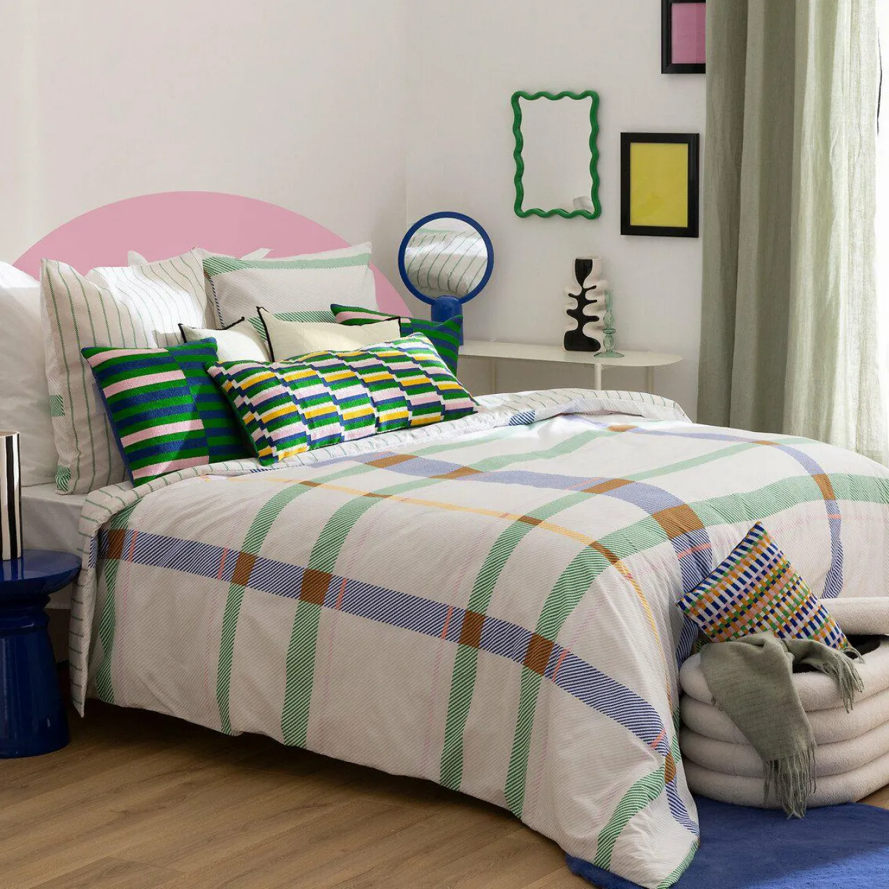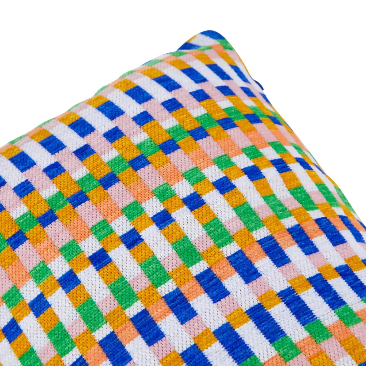 Imprimé : coussin à motif graphique au recto et uni au verso.