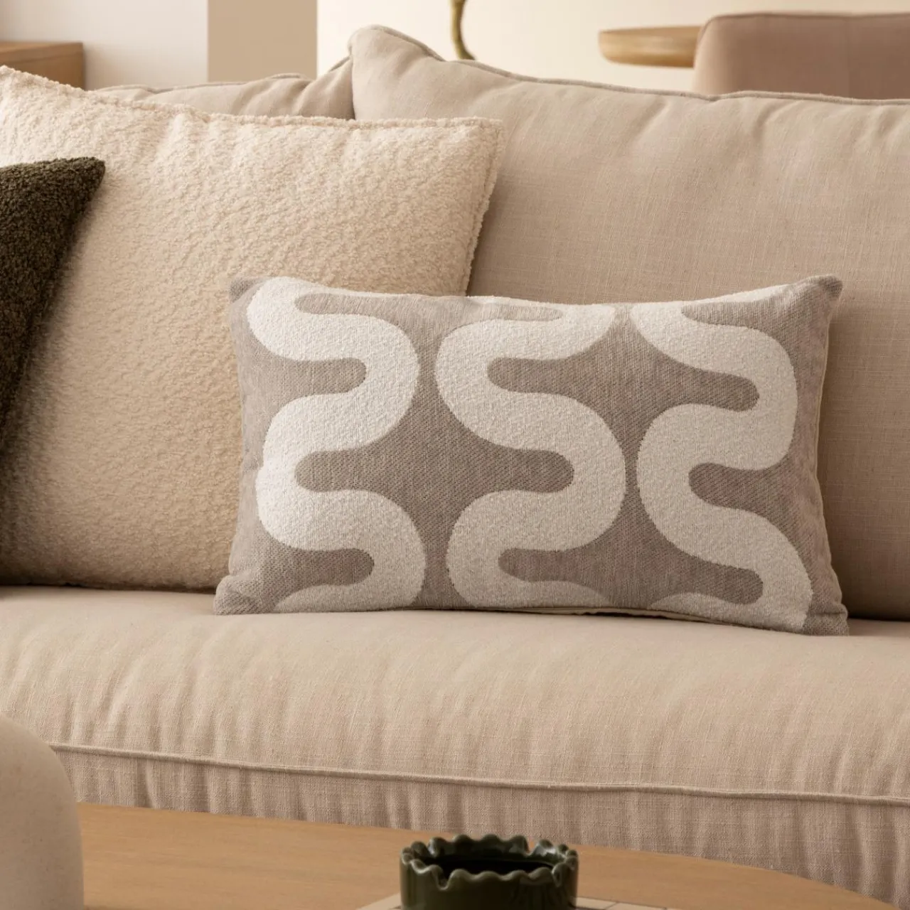 Imprimé : housse de coussin à motif graphique.