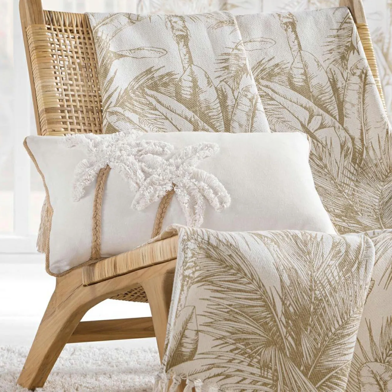 Imprimé : coussin à motif exotique au recto et uni au verso.