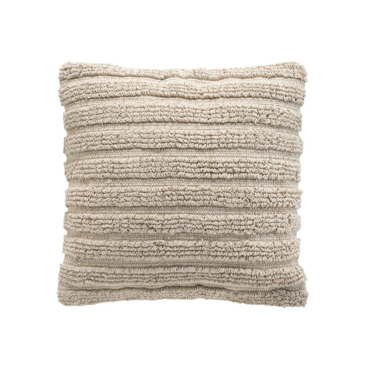 Imprimé : housse de coussin à motif bouclette au recto et unie au verso.