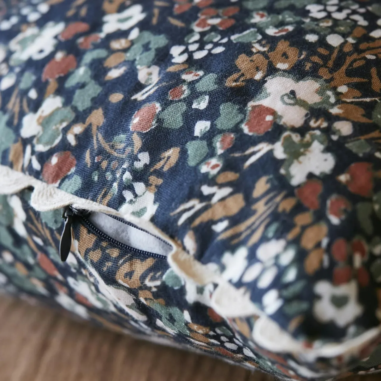 Ce coussin printanier et fleuri, en gaze de coton, insuffle un vente de fraîcheur et de douceur dans la maison.