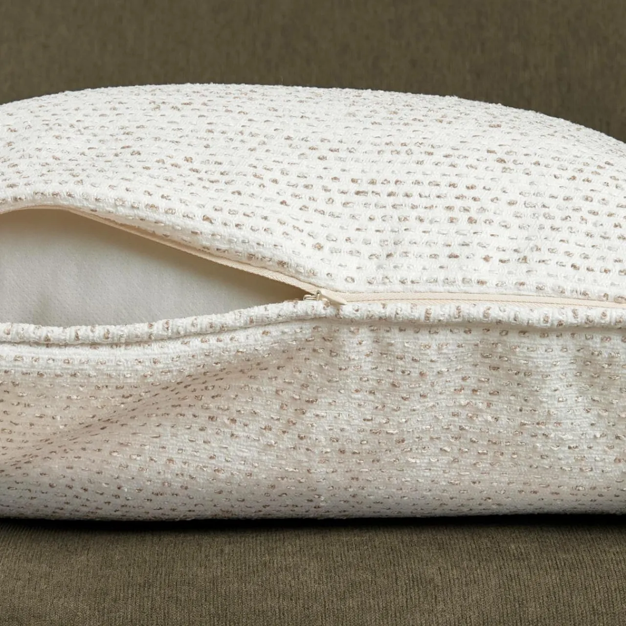 Finition : déhoussable avec fermeture à glissière et passepoil. Fils teints tissage jacquard.