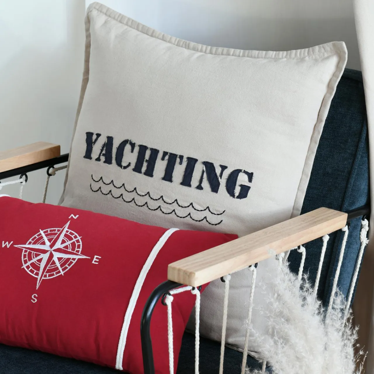 Imprimé : coussin à motif message au recto et uni au verso.