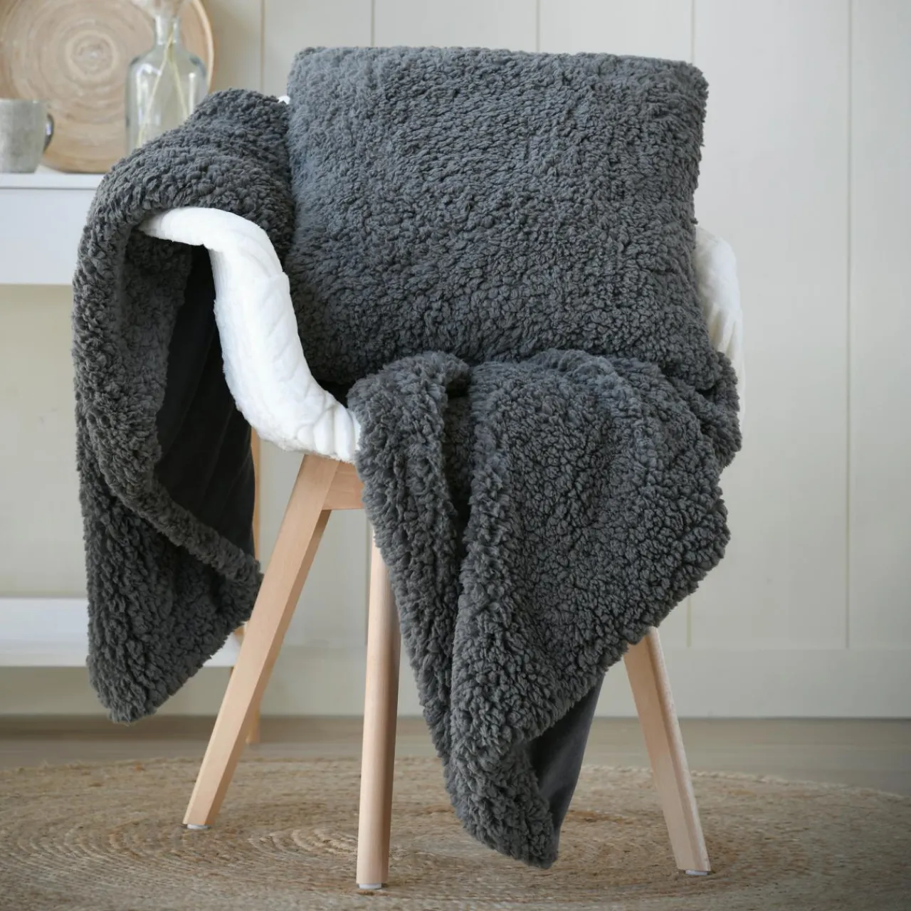 Matière : 100 % polyester, fausse fourrure au recto et sherpa au verso.