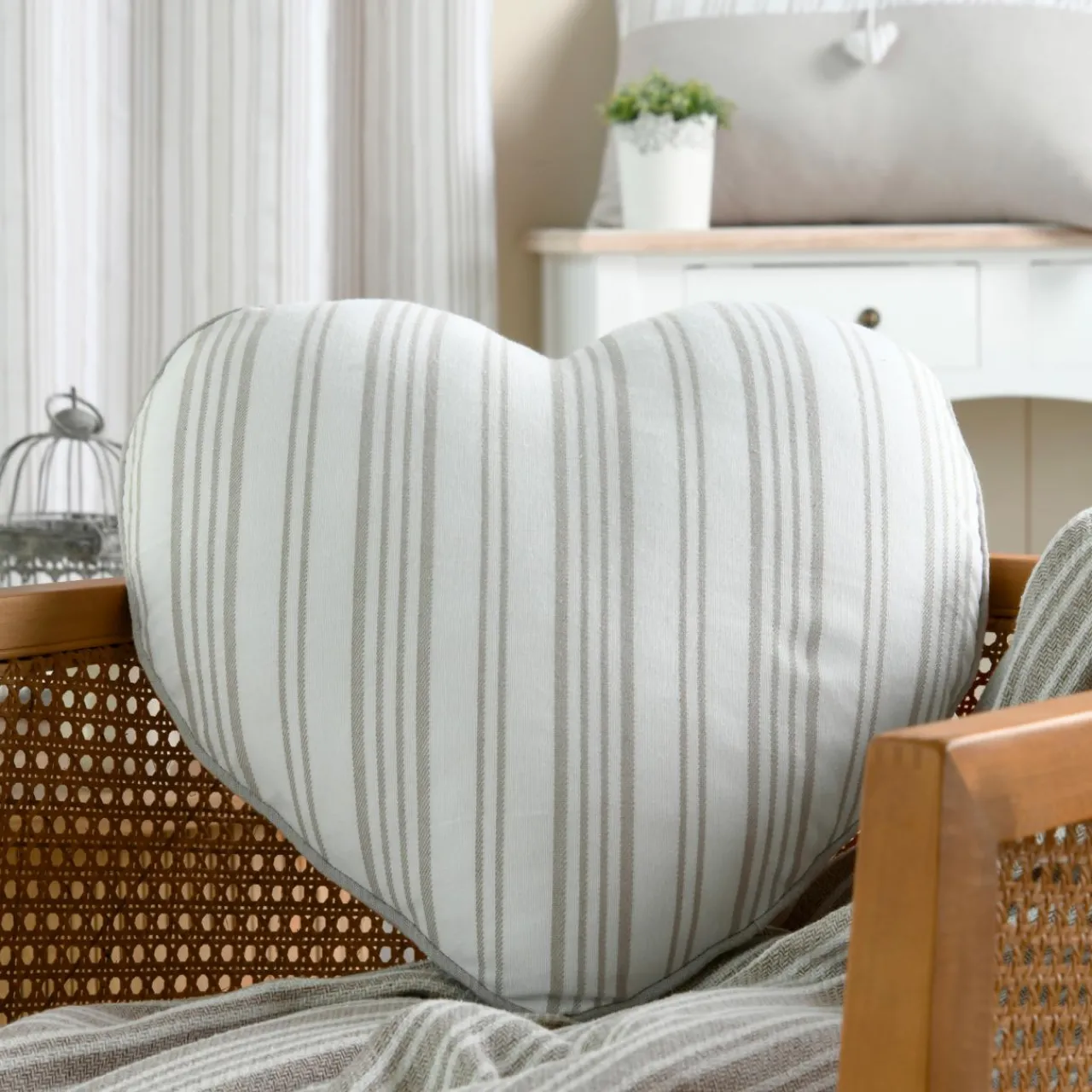 Ce coussin en forme de cœur, issu de la gamme Joséphine, apporte une touche romantique et tendre à votre décoration. Son motif épuré en rayures sur le recto et uni au verso, associé à sa couleur écrue, s’intègre parfaitement dans un univers de maison de campagne.