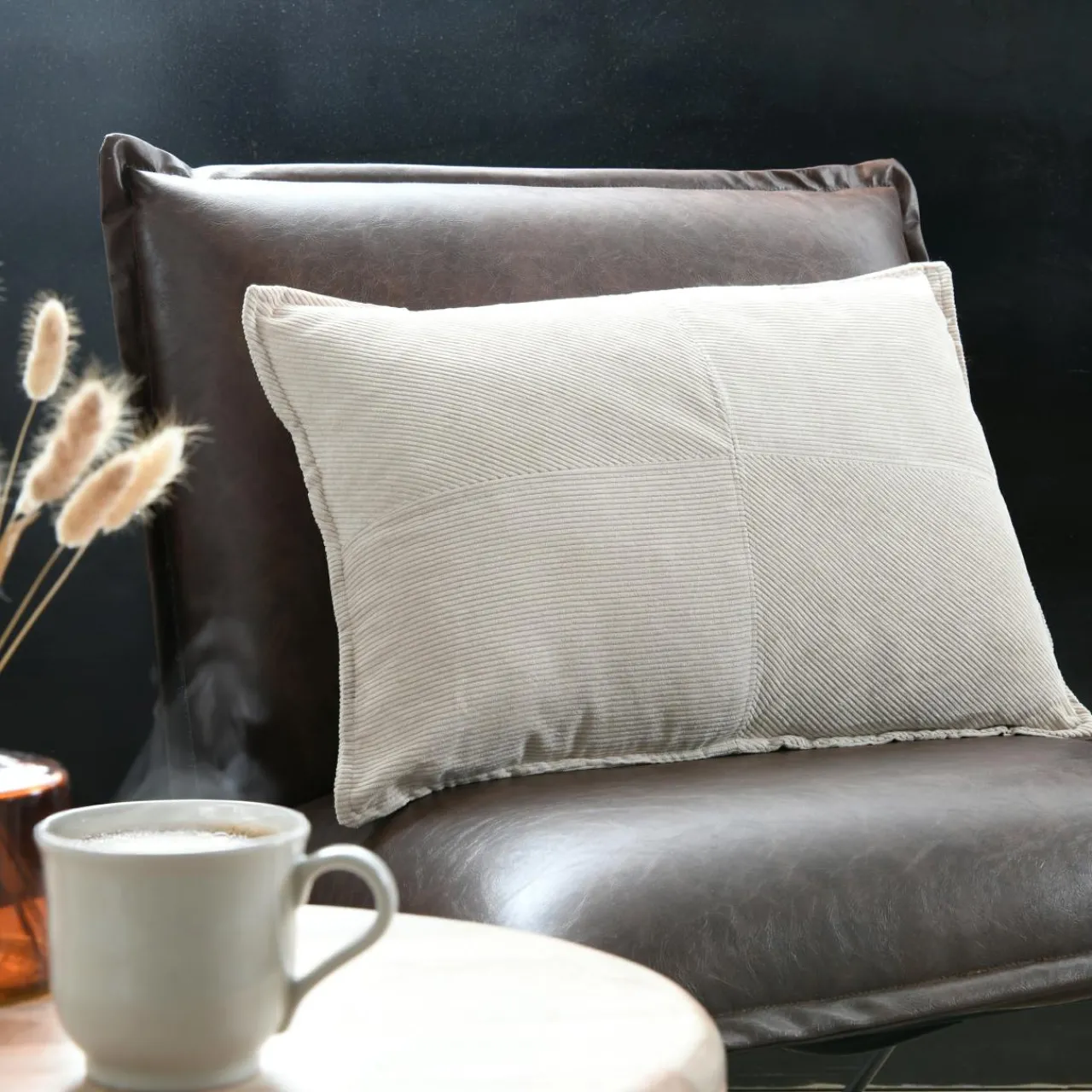 Finition : surpiqûres, déhoussable fermeture à glissière.