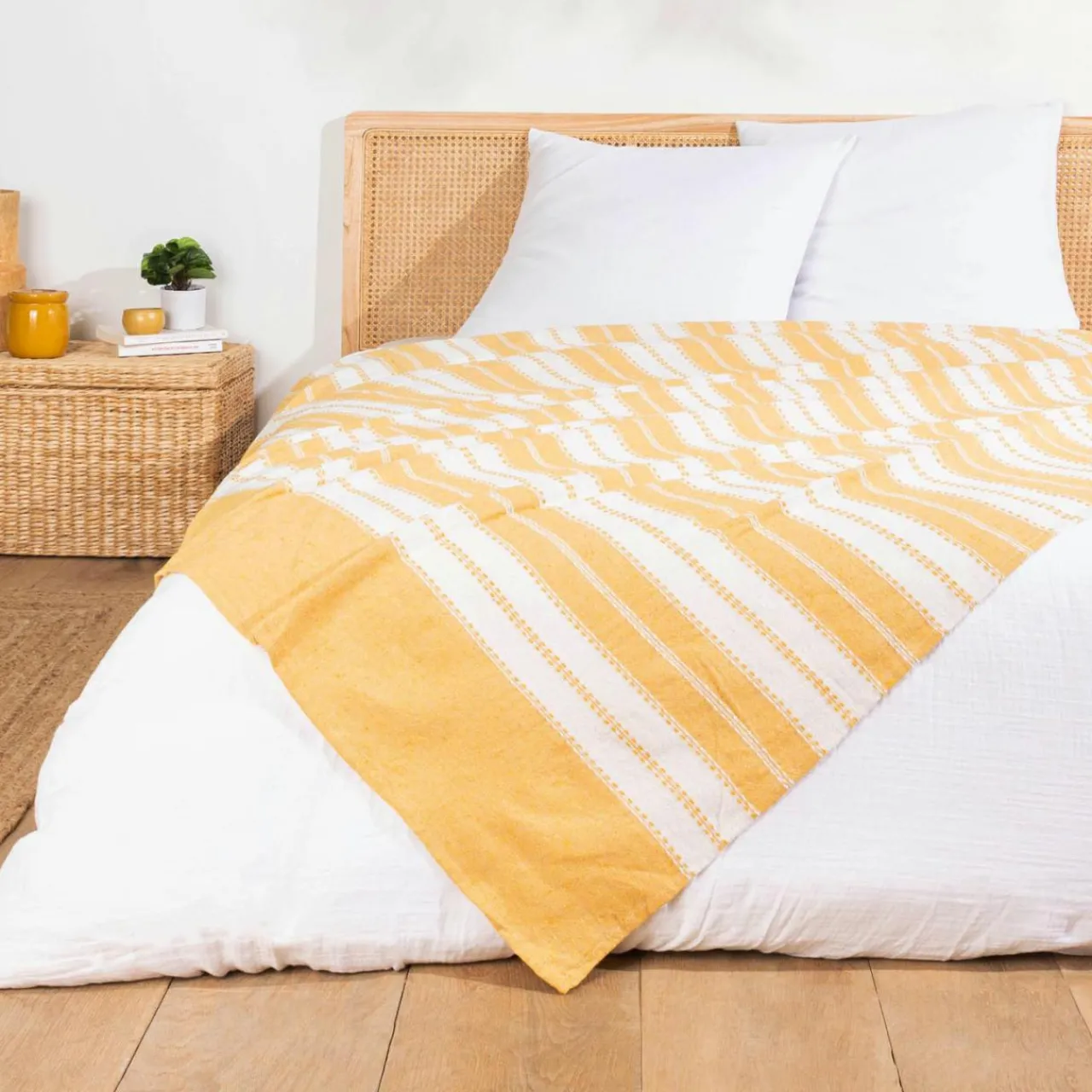 Imprimé : couvre-lit à rayures.