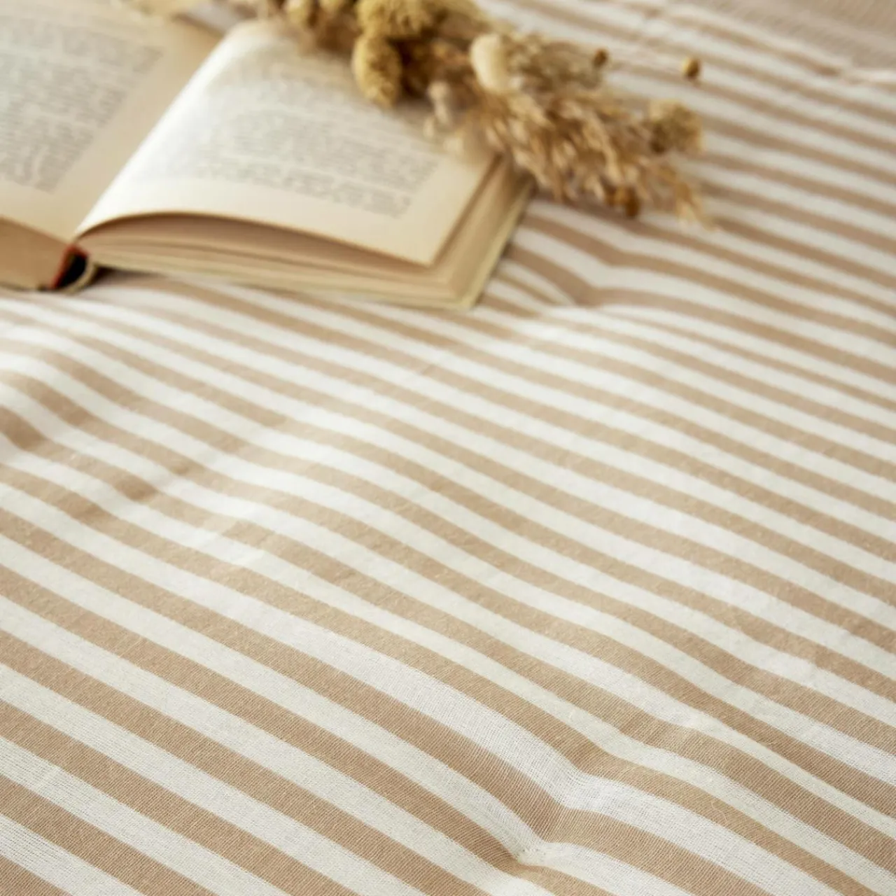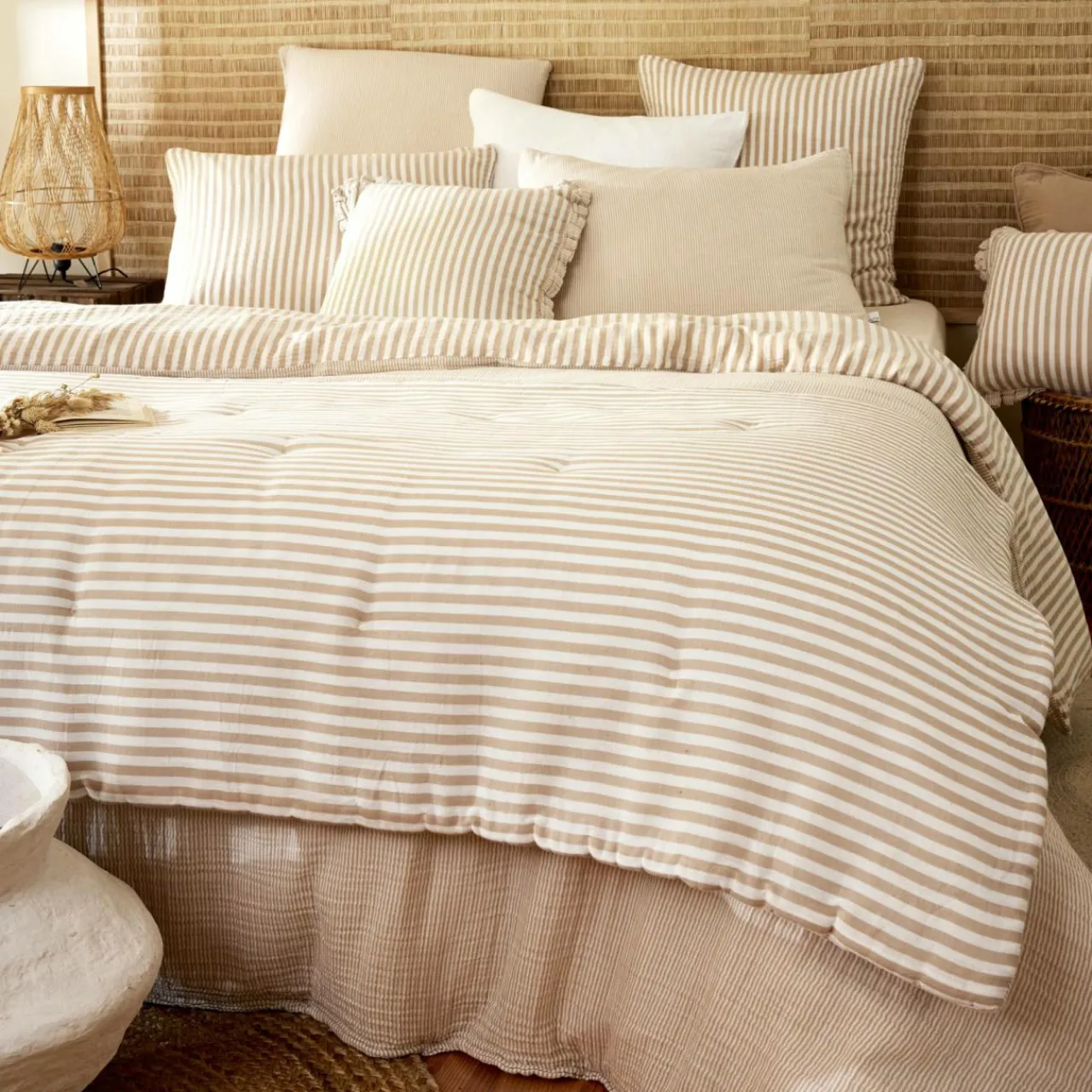 Imprimé : édredon à motif rayures recto et verso.