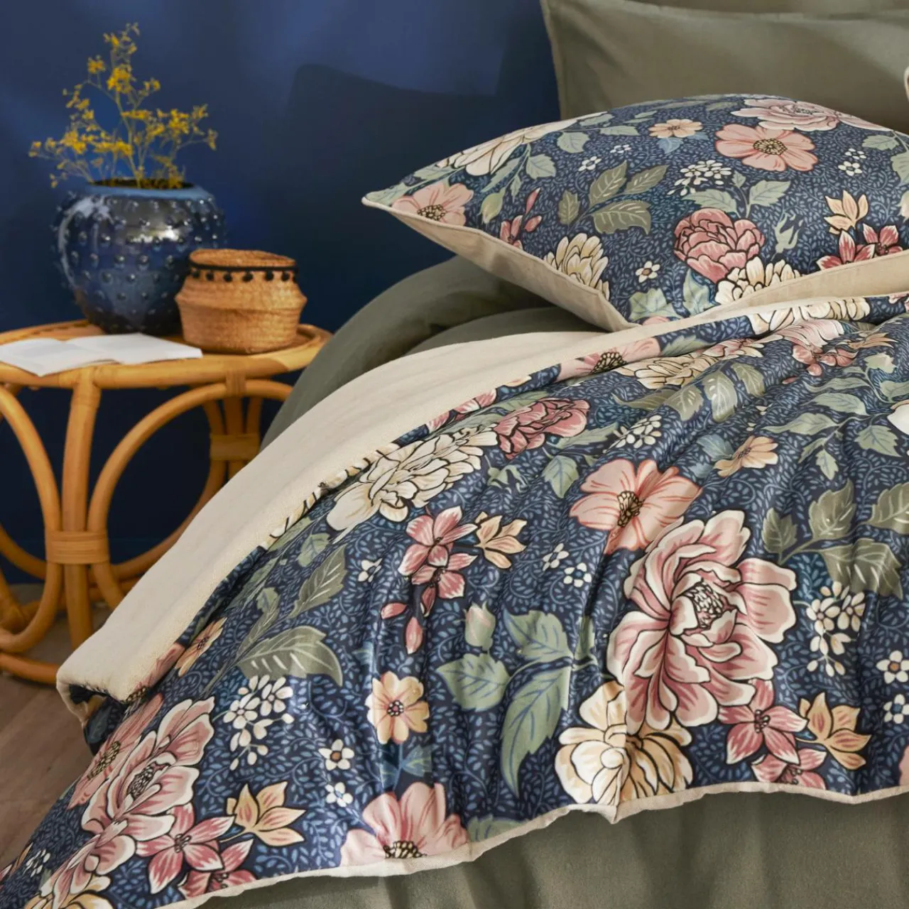 Imprimé : édredon à motif floral.