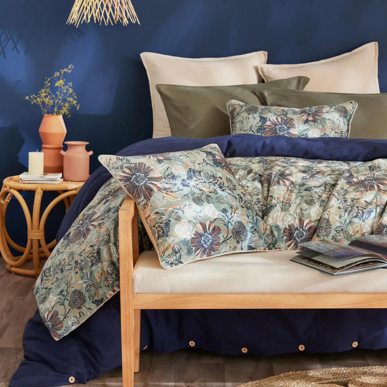 Imprimé : édredon à motif floral.