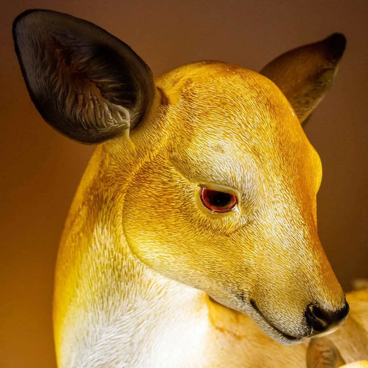 Ajoutez une touche de magie à vos fêtes avec cette décoration lumineuse de Noël représentant une famille de faon. Fabriquée en fibre de verre, son aspect réaliste et ses détails soignés en font un ajout charmant et chaleureux à votre décor festif.