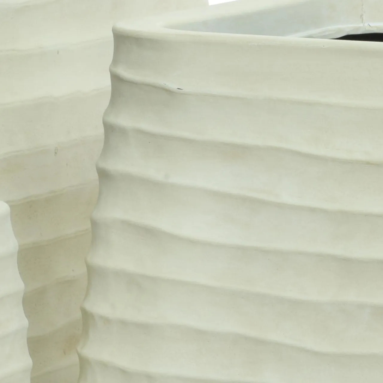 Ces cache-pots Jamie en plastique recyclé ajoutent une élégance naturelle à tout espace extérieur grâce à leur finition ondulée unique.