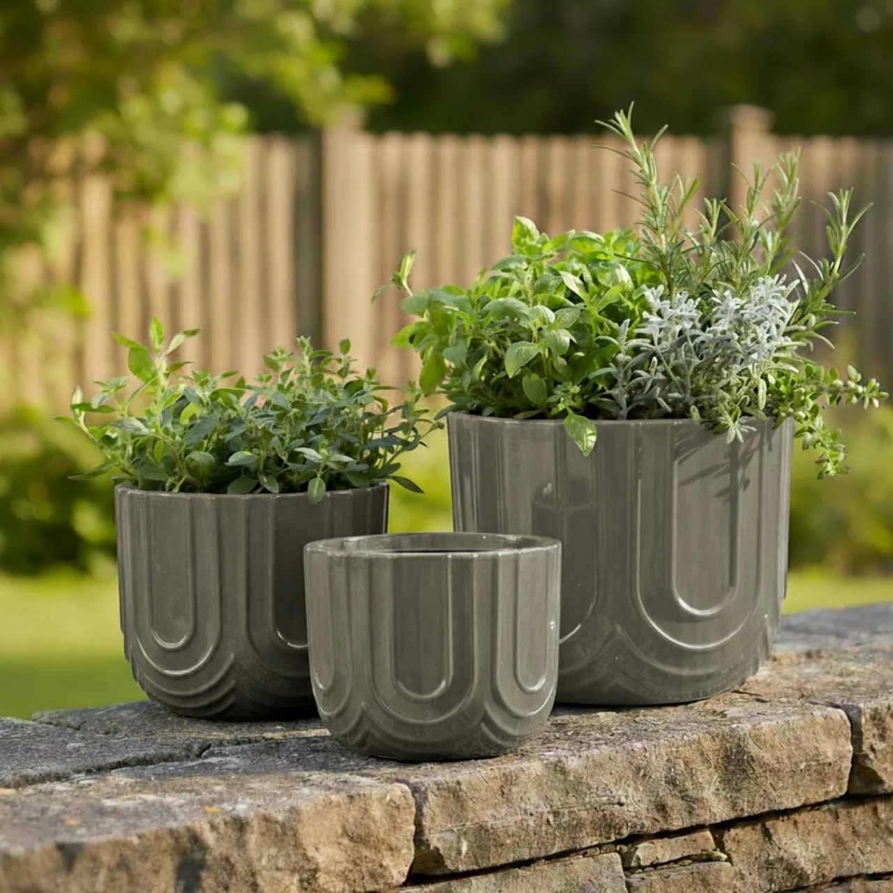 Ces élégants cache-pots Milo en plastique recyclé gris sont parfaits pour embellir votre espace extérieur tout en respectant l’environnement.