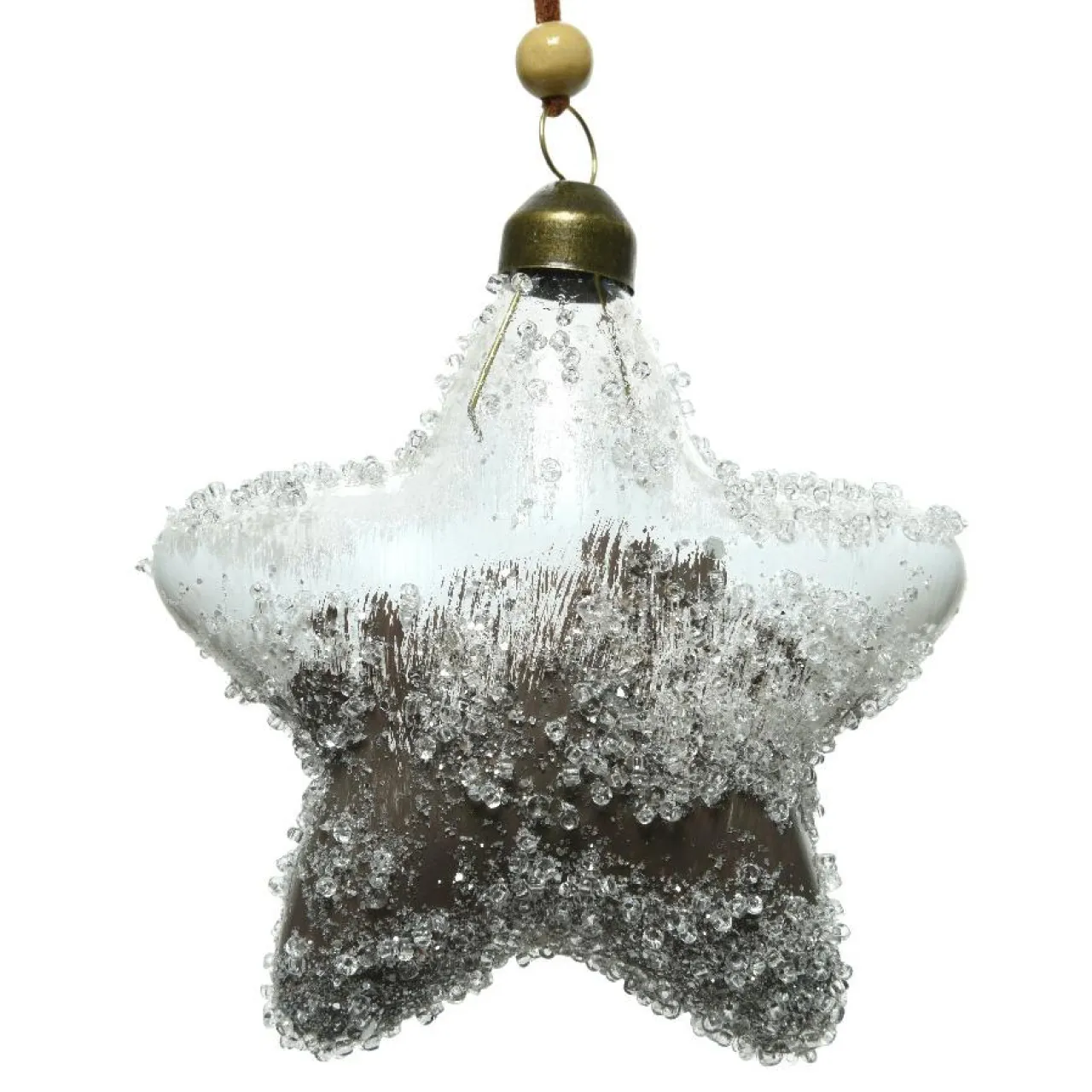 Une déco naturelle et délicate avec ces étoiles en verre givrées.