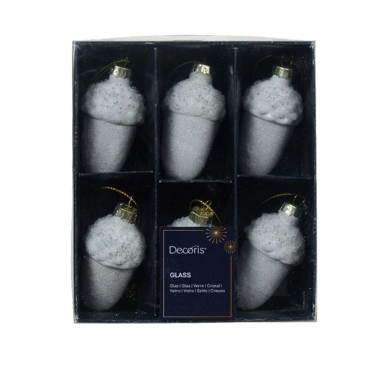 Ces magnifiques suspensions en verre blanc, finition perle rocaille, apporteront une touche de pureté et de douceur à votre sapin de Noël. Leur design délicat et leur finition brillante captent la lumière et créent une ambiance féérique, idéale pour les fêtes de fin d’année.