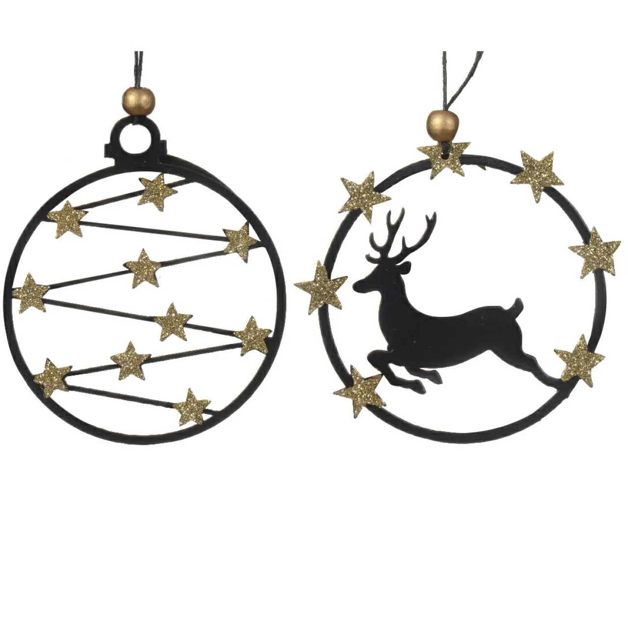 Cette décoration est composée d’une suspension avec 2 éléments : un cercle d’étoiles et un cercle renne de Noël.