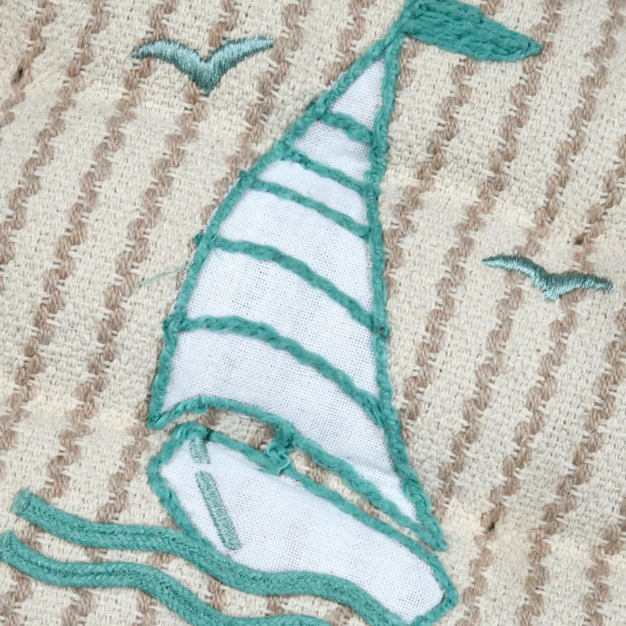 Imprimé : motif bateau et rayures au recto, uni au verso.