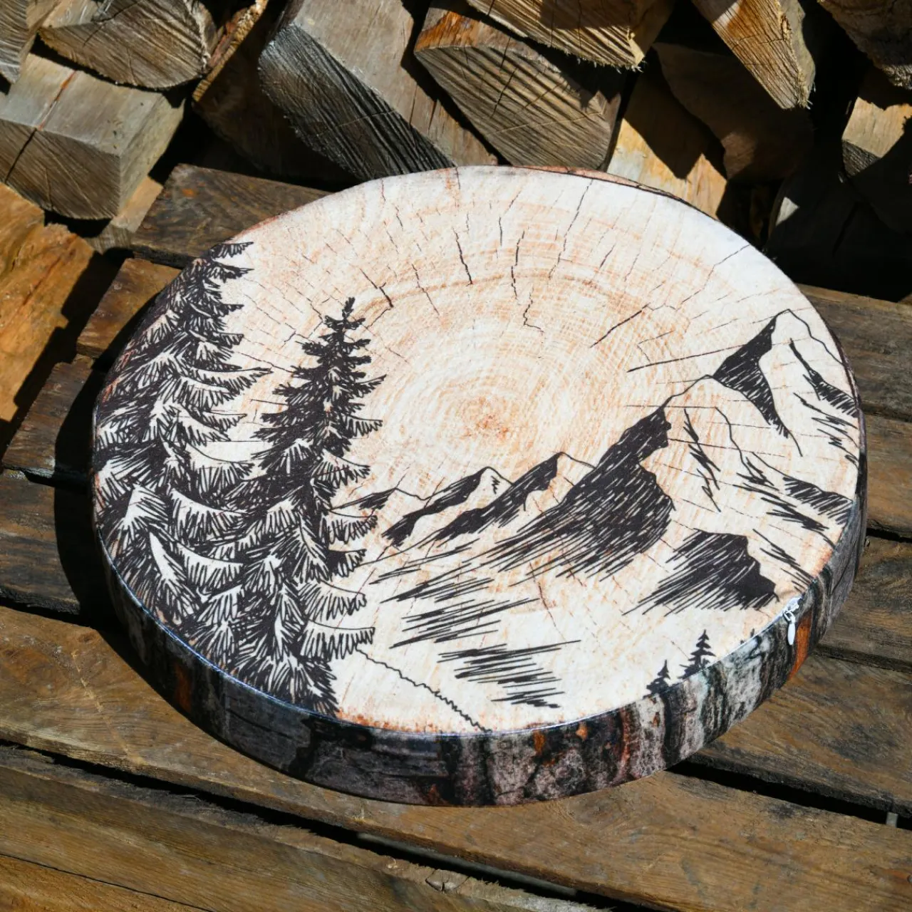 Imprimé : motif vache au recto et montagne au verso.