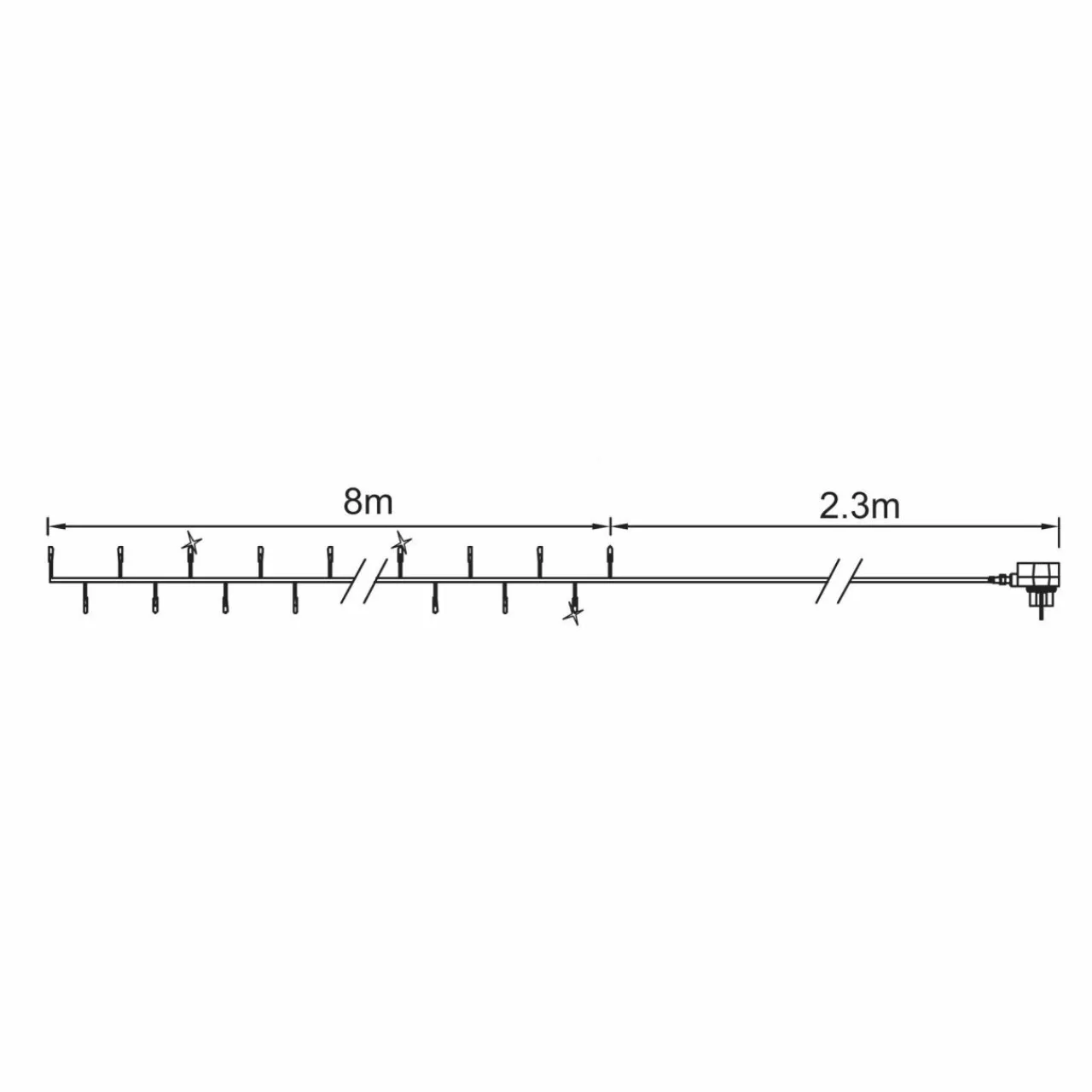 Mode de fonctionnement : 104 LED fixes et 24 LED clignotantes. Cette guirlande consomme 0.0036 Kwh par heure d’utilisation.