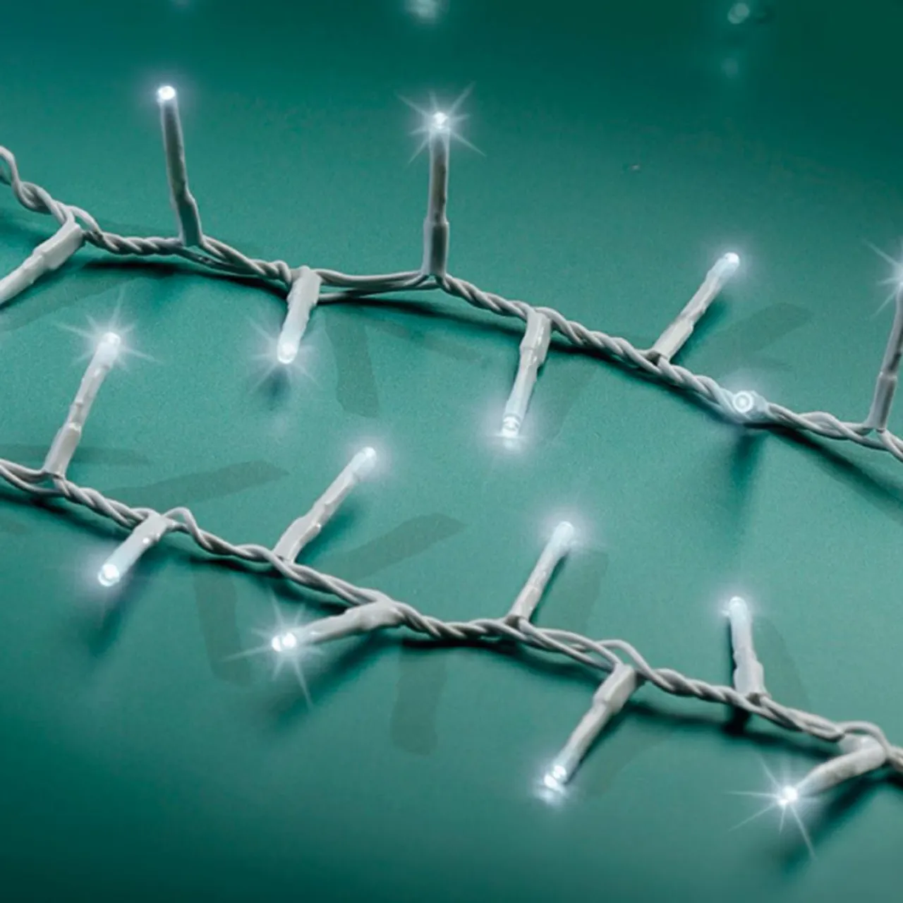 Mode de fonctionnement : guirlande clignotante avec 8 jeux de lumière et une fonction mémoire. Ce produit fonctionne sur prise électrique (transfo IP44 fourni). Utilisation intérieure et extérieure.