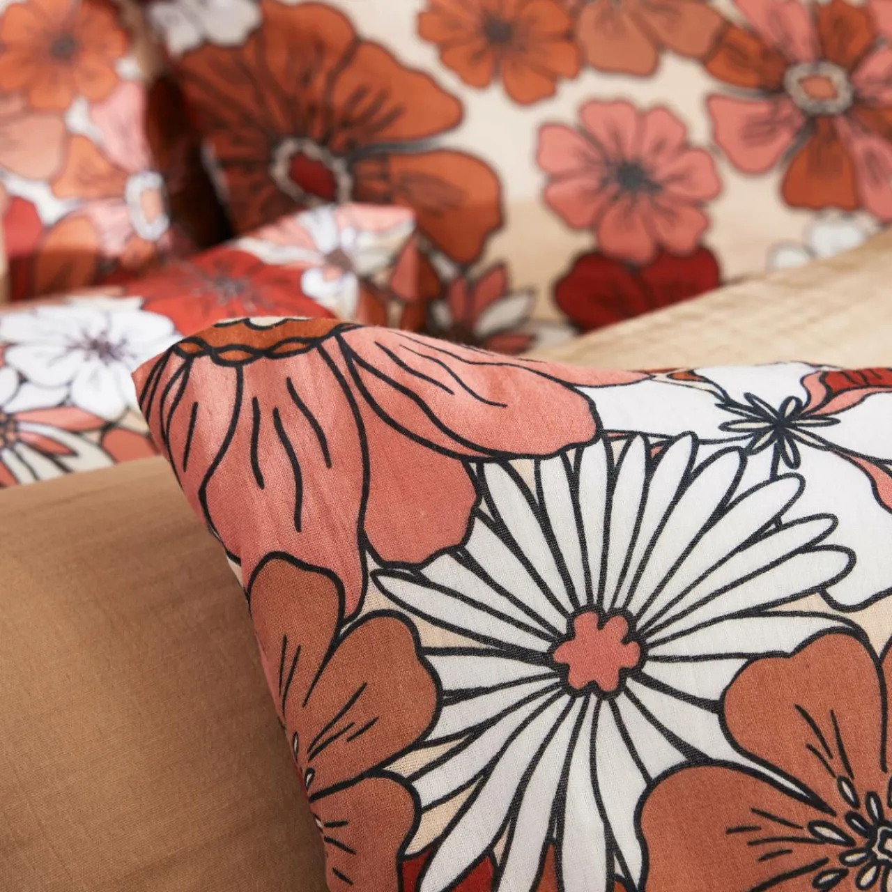 Imprimé : housse de couette à motif floral au recto et unie au verso.