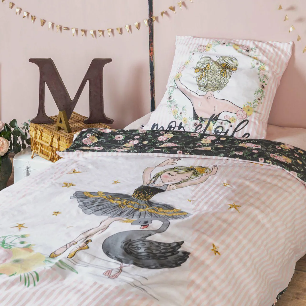 Imprimé : housse de couette à motif danseuse et à rayures.
