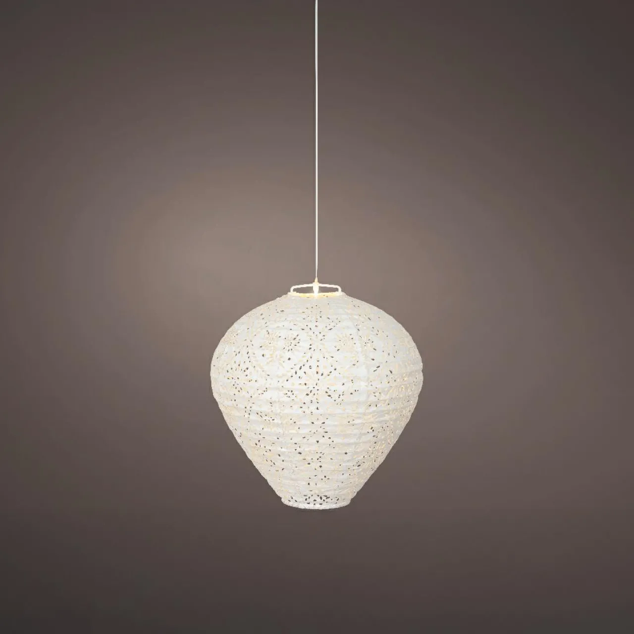 Cette suspension solaire ajourée illumine votre jardin d’une lumière blanc chaud, créant une ambiance accueillante et élégante pour vos soirées en extérieur.