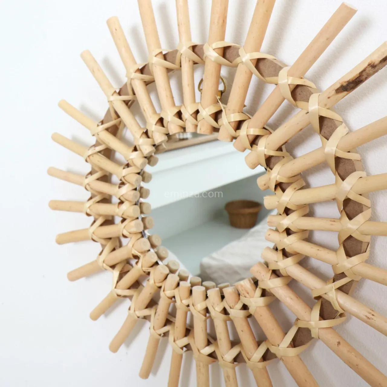 Miroir avec rayons : diamètre 30 x épaisseur 2,2 cm.