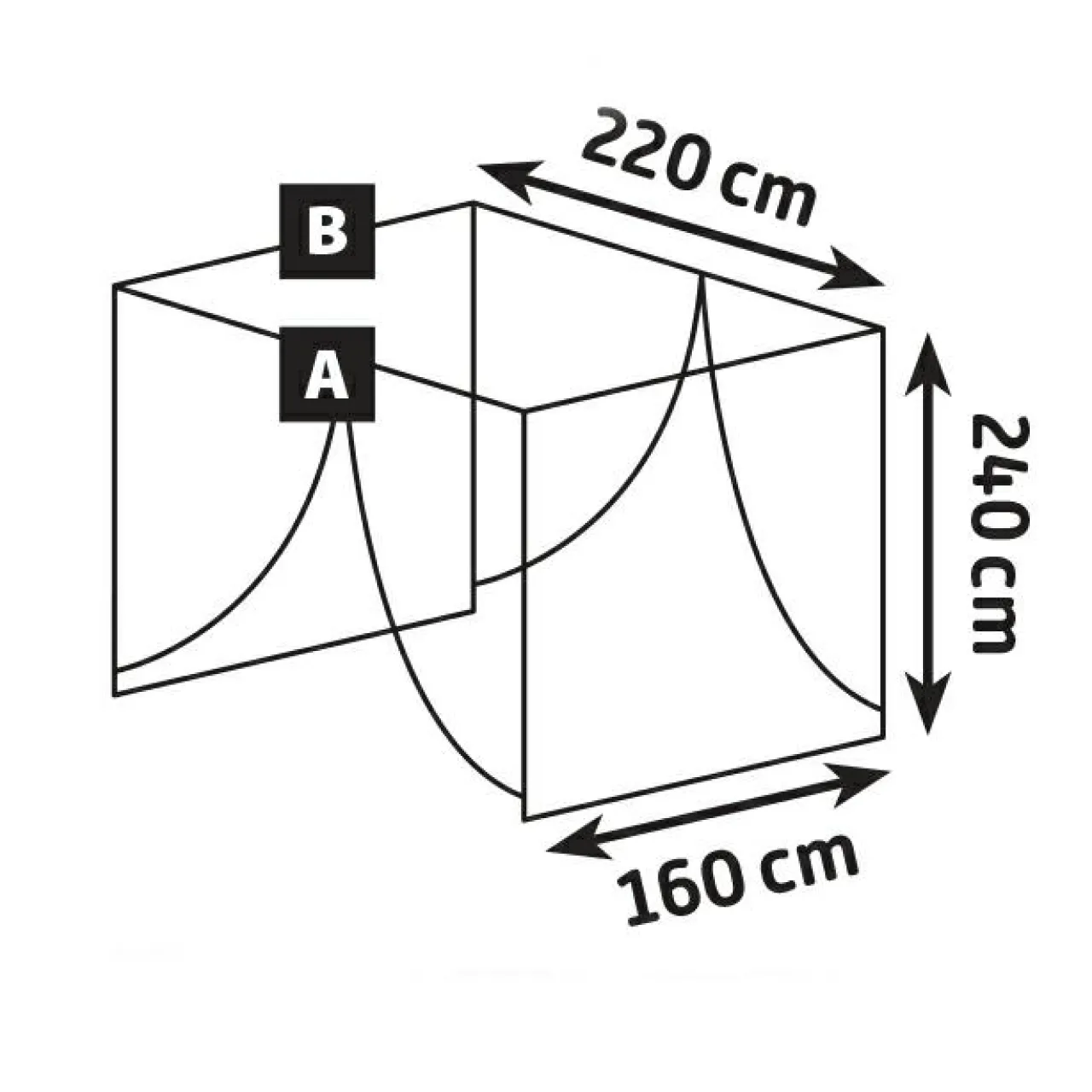 Dimensions : longueur 220 cm x largeur 160 x hauteur 240 cm.