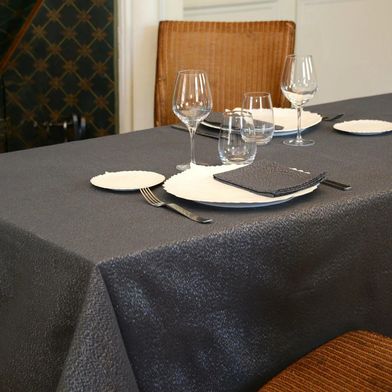 Nappe avec finition argentée.