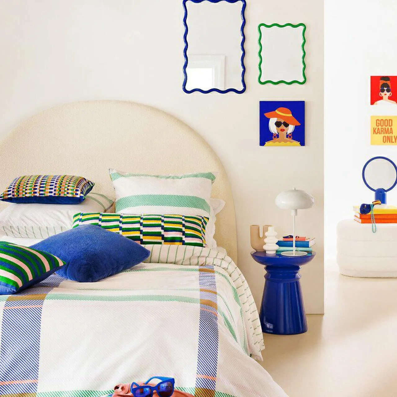 Imprimé : housse de couette à rayures et carreaux.