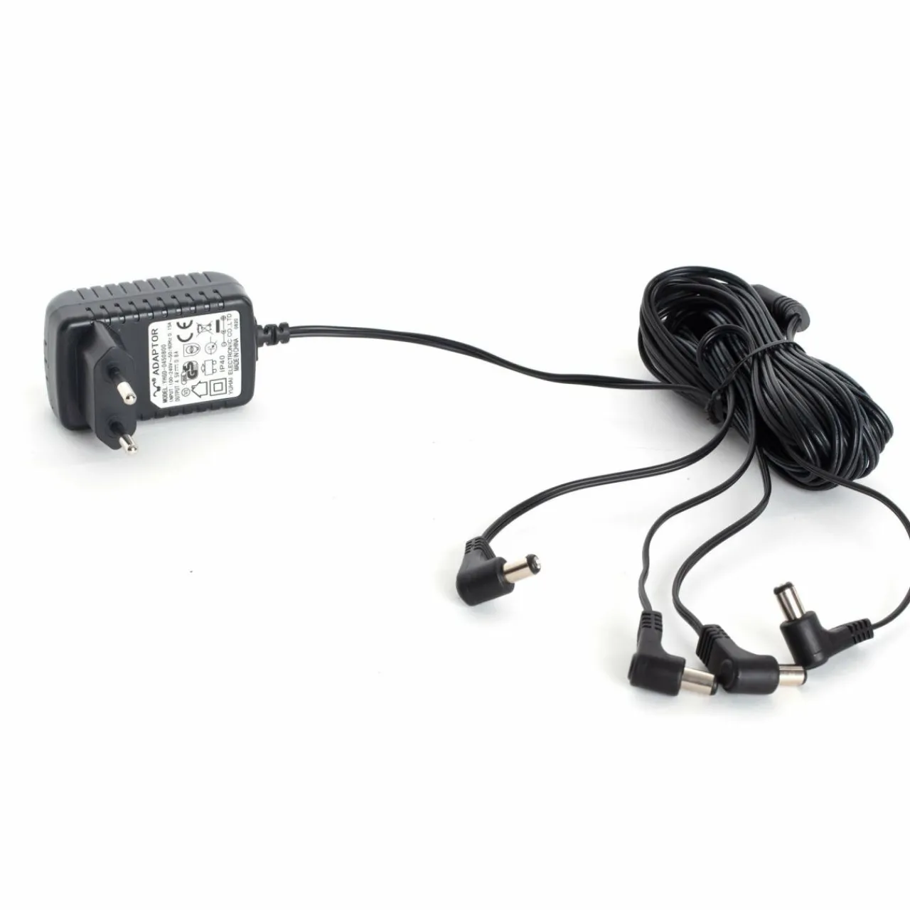 Transfo IP20 (4,5V – 0,8 A) connectable aux villages fonctionnant avec piles. Diamètre des connecteurs 3,5 mm.
