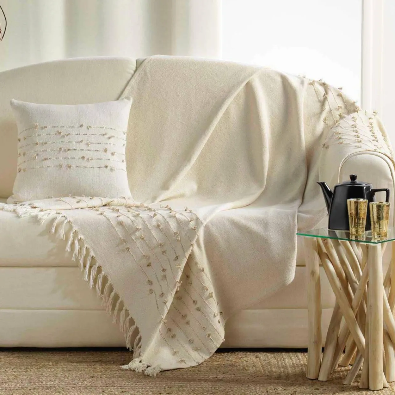 Coussin Et Housse|EMINZA Housse de coussin carrée flanelle (60 x 60 cm) Didou Ivoire
