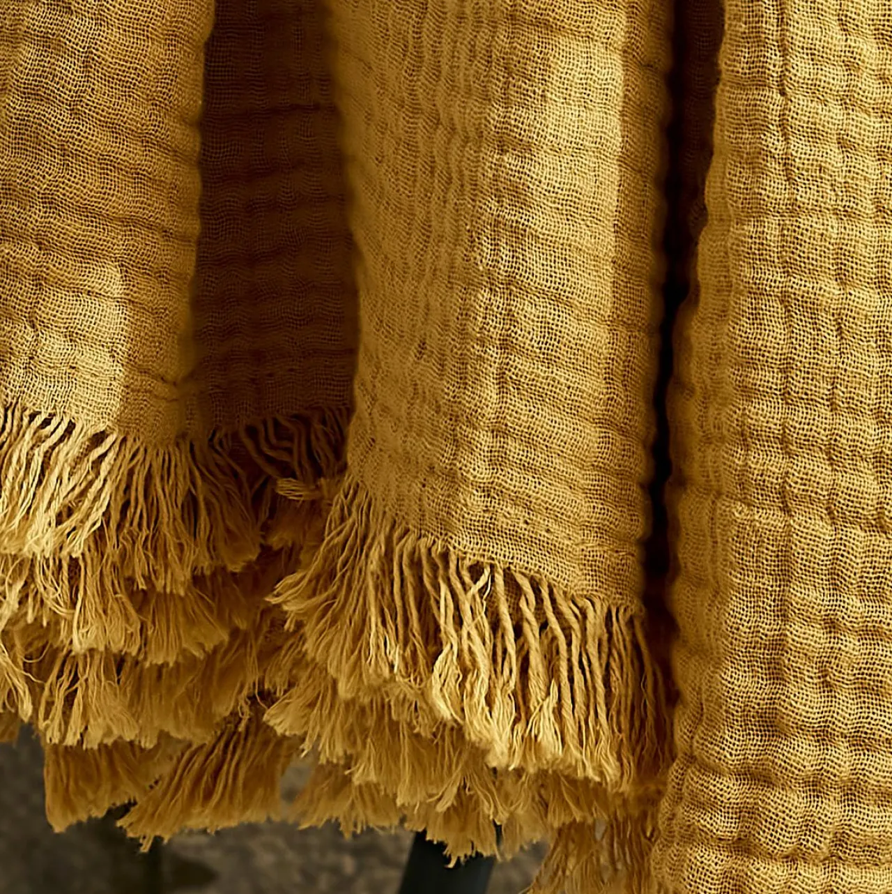 Naturellement gaufré, ce plaid en gaze de coton ne nécessite pas de repassage.