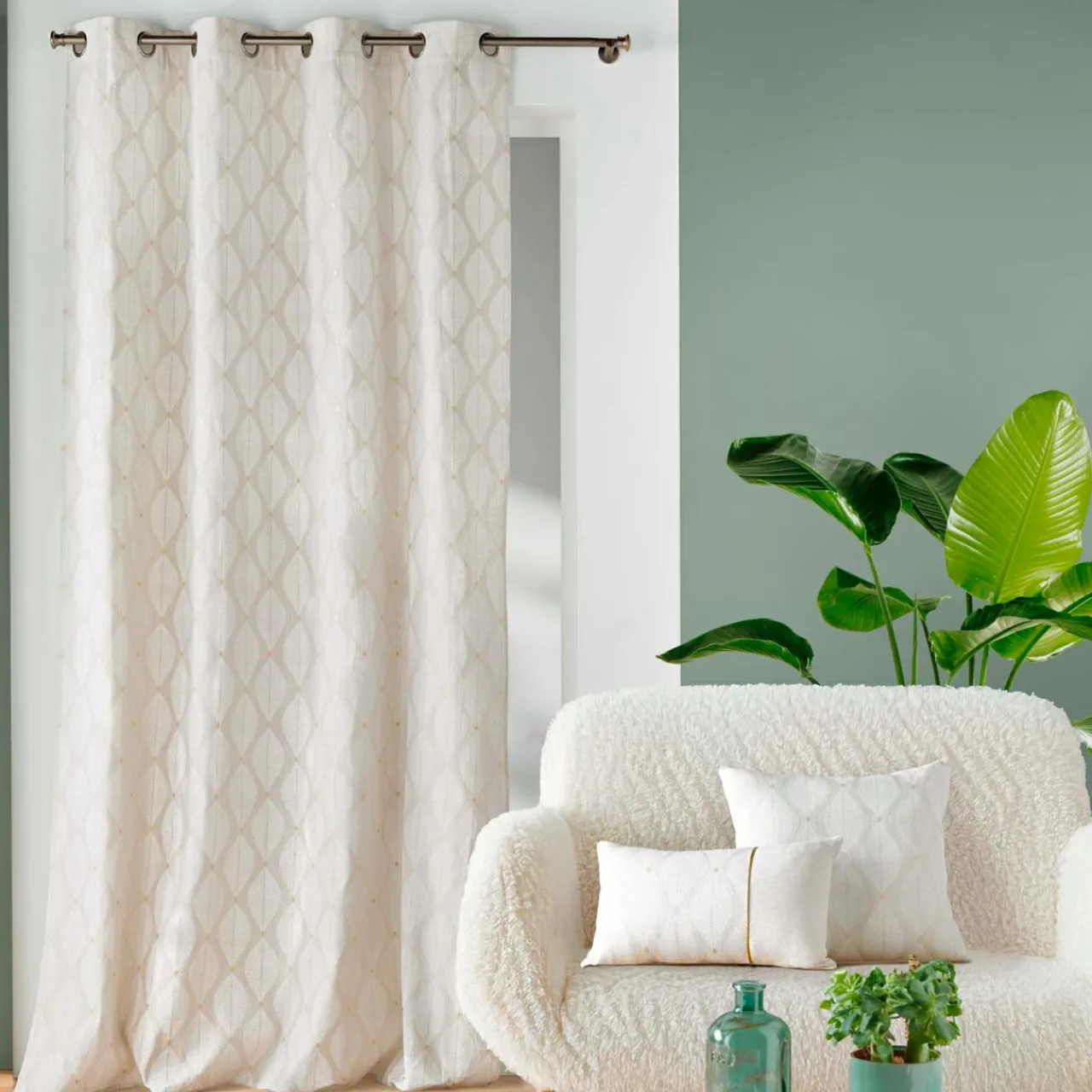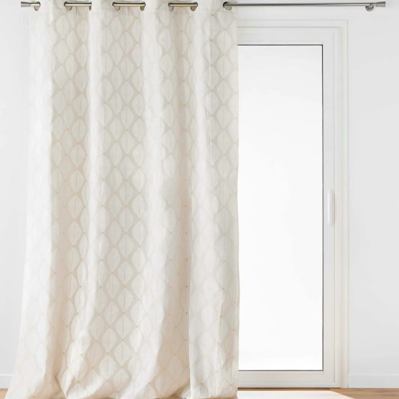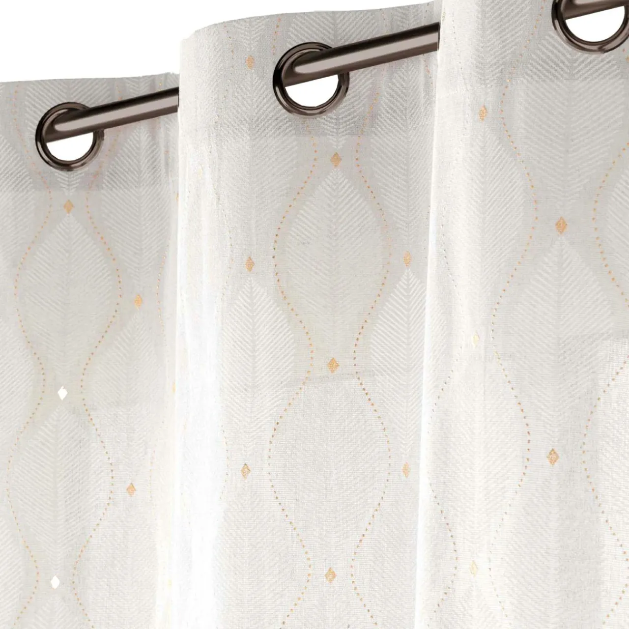 Ce rideau à oeillets Maho Blanc apportera une touche d’élégance à votre intérieur. Son tissu en polycoton imprimé métallisé avec un motif de feuillage ajoute une note naturelle et raffinée à votre décoration.