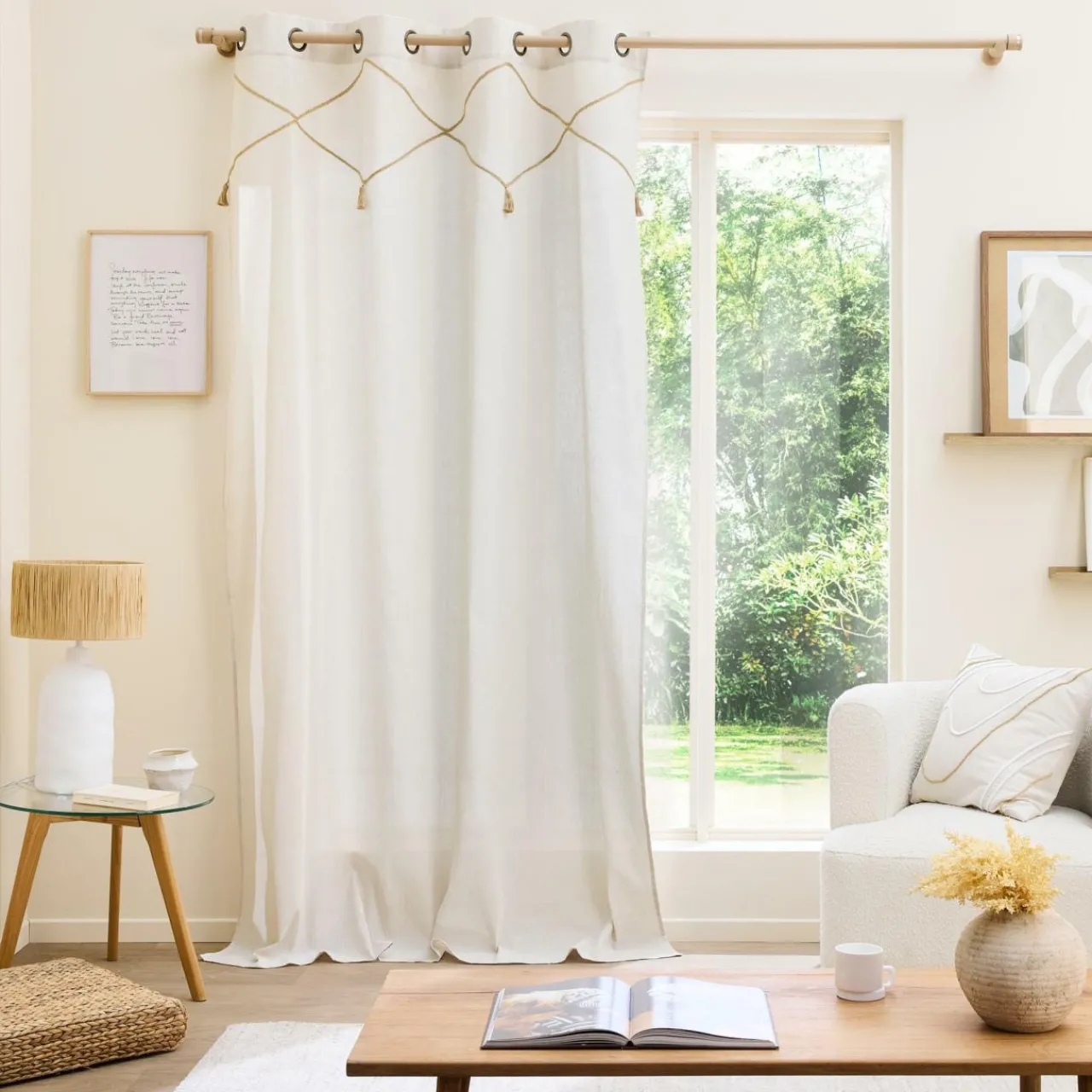 Ce rideau au style doux et naturel habille votre fenêtre et décore votre espace.