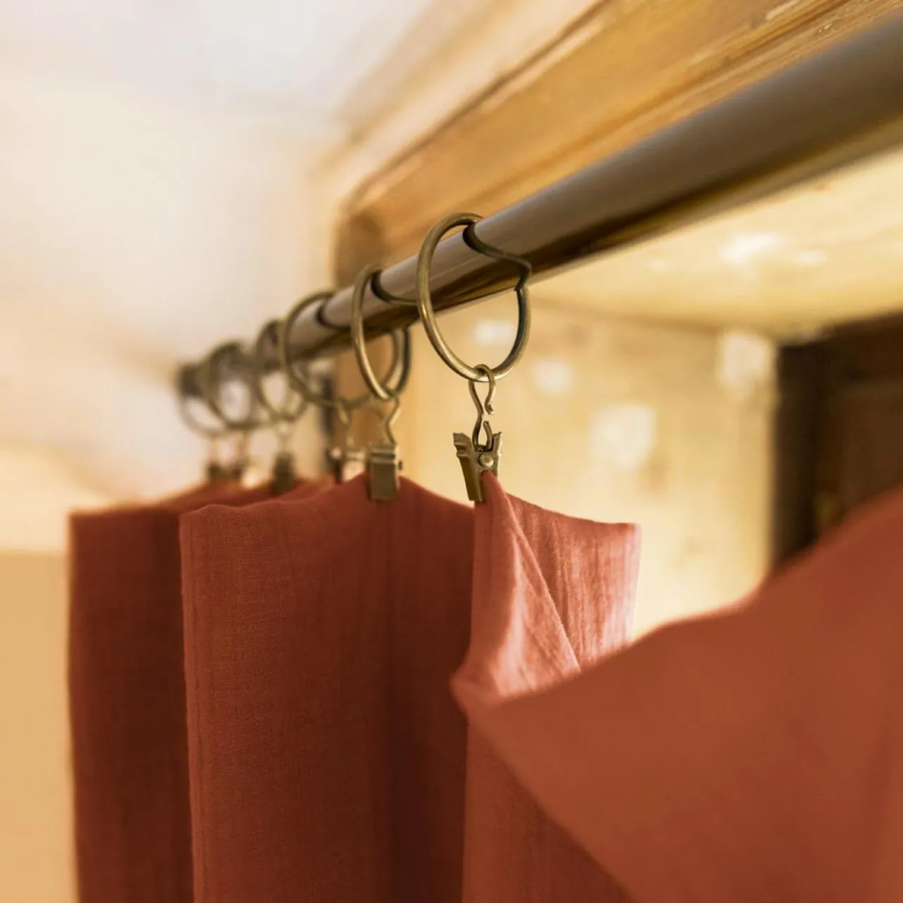 Finition : 10 anneaux pinces fournies couleur bronze (diamètre extérieur 4,5 cm et diamètre intérieur 3,8 cm).