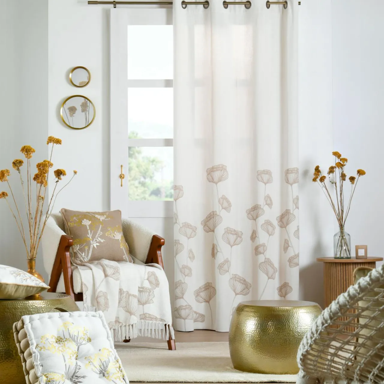 Le rideau Oriana, avec son motif floral délicat sur un fond écru, apporte une touche de légèreté et de style à votre intérieur. Son esprit végétal et sa matière en coton recyclé en font un choix élégant et écologique.