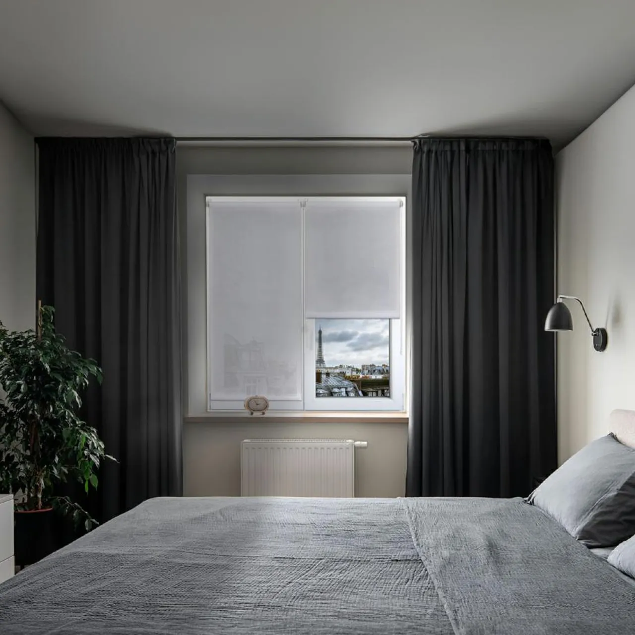 Son tissu uni réduit efficacement le vis-à-vis tout en laissant filtrer la lumière naturelle.