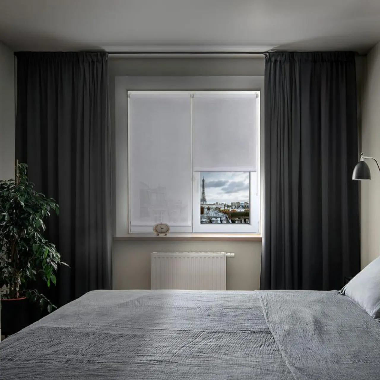 Son tissu uni réduit efficacement le vis-à-vis tout en laissant filtrer la lumière naturelle.