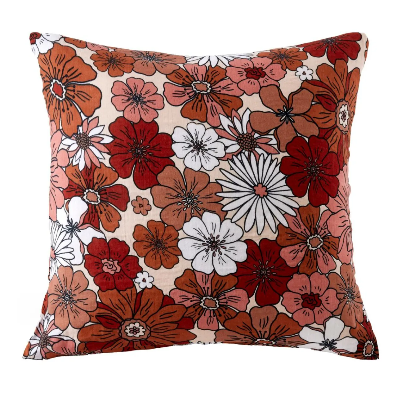 Imprimé : taie à motif floral verso et unie recto.