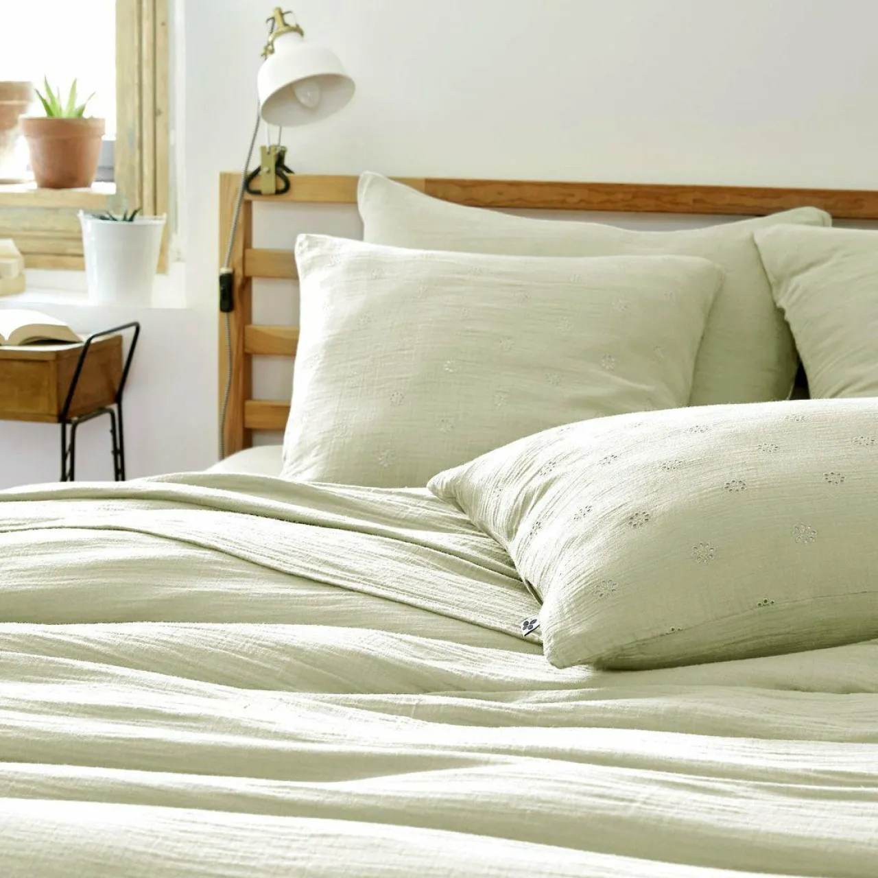 Imprimé : taie fleurie style broderie anglaise.